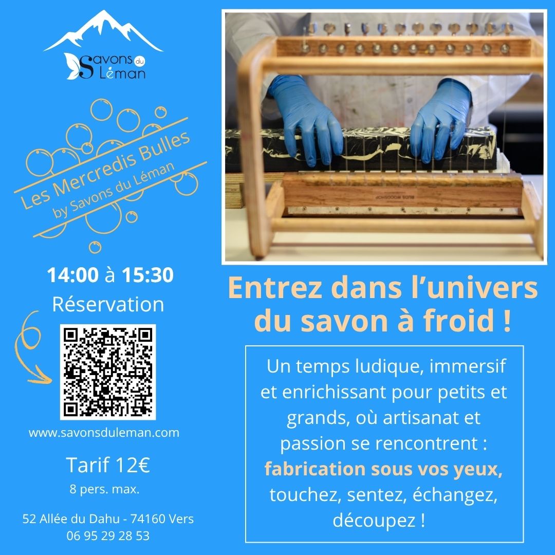 Vous recherchez une activité authentique, locale et écologique près du lac Léman ? La Savonnerie du Léman, spécialisée dans la fabrication de savons solides artisanaux 100% naturels et bio, vous ouvre ses portes pour une expérience unique. Plongez dans l’univers de la saponification à froid, découvrez les coulisses de notre atelier et repartez avec des souvenirs parfumés… !